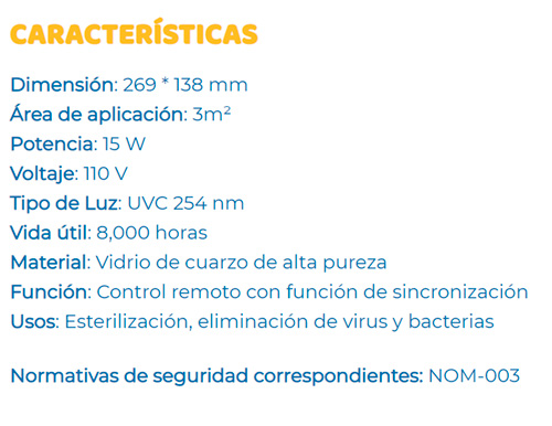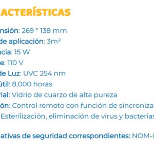 La mayoría de las lamparas del mercado trabajan a un potencia de 5 Watts o menos, eso reduce la efectividad con la que desinfecta el área, nuestra lámpara tiene una potencia de 15 Watts que ofrece un poder de desinfección de la mejor calidad.